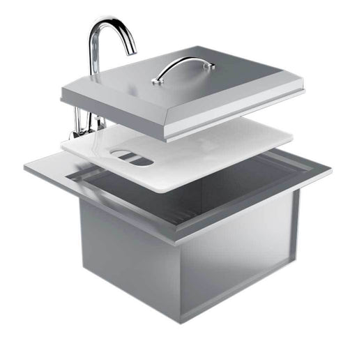 View full details21" Premium Sink with Removable Lid, /Hot/Cold Water Faucet , Soap Dispenser, Sink Grid,Cutting Board & (2) Sink Drains