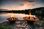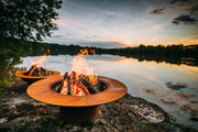 Celebrate life with our Magnum Fire Pit.  Borrowing from the classic and elegant design of our Saturn Fire Pit, the Magnum, with its commanding presence, will without a doubt inspire the hearts and minds of those who gather around it.\n\nINCLUDES: Fire Pit, Stainless Steel HPC PENTA Burner, Lava Rock, Flex Line Kit and Plate\n\nHEIGHT: 18\n\nWIDTH: 35" ID / 54" OD\n\nBASE: 6" / 19"