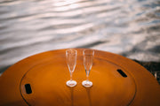 The Saturn Fire Pit reminds us of its name sake planet Saturn with the spectacular ring feature in the night sky. The addition of a steel lid can act as a snuffer or help create additional table space when your Fire Pit Art is not in use.\n\nINCLUDES: Fire Pit, Stainless Steel HPC PENTA Burner, Lava Rock, Flex Line Kit and Plate\n\nHEIGHT: 14\n\nWIDTH: 28" ID / 41" OD\n\nBASE: 7"/23"