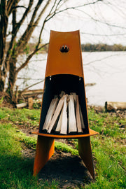 Much like Italy's Mount Vesuvius this fire pit is statuesque and created to burn. Vesuvius channels smoke and fire up the flue to the sky above. Our trilateral design protects the fire from wind and lessens the spread of sparks and embers. Heavy metal construction soaks up and radiates the heat from the fire. Created using 1/4" mild carbon steel, Vesuvius is maintenance free and designed for smaller spaces.\n\nHEIGHT: 48"\n\nWIDTH: 21"\n\nBASE: 21"