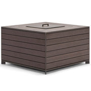 Cast Aluminum Essence NexTeak Square Chat Height Fire Table - Bark by Woodard Outdoor Furniture. Height: 25"; Width: 41.75"; Depth: 41.75"