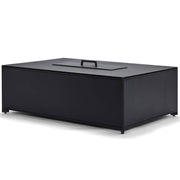 Cast Aluminum Essence Solid Panel Coffee Table Height Rectangular Fire Table by Woodard Outdoor Furniture. Height: 20"; Width: 41.75"; Depth: 60"