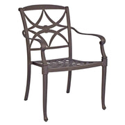 Cast Aluminum Wiltshire Dining Armchair - Stackable by Woodard Outdoor Furniture. Height: 36.2"; Width: 24"; Depth: 27.5"; Seat Height: 16"; Arm Height: 24.75"; Item Weight: 15