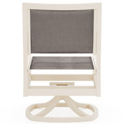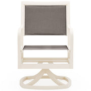 Aluminum Scala Padded Sling Swivel Dining Chair by Woodard Outdoor Furniture. Height: 36"; Width: 22.75"; Depth: 31.25"; Seat Height: 17"; Arm Height: 25.25"