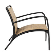 Aluminum Orion Padded Sling Lounge Chair with Arms by Woodard Outdoor Furniture. Height: 33.75"; Width: 26.25"; Depth: 33.75"; Seat Height: 16.75"; Arm Height: 27"; Item Weight: 30