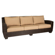 Woven HDPE Saddleback Sofa by Woodard Outdoor Furniture. Height: 32"; Width: 97"; Depth: 38"; Seat Height: 18"; Arm Height: 24.25"; Item Weight: 86.70