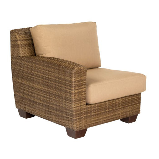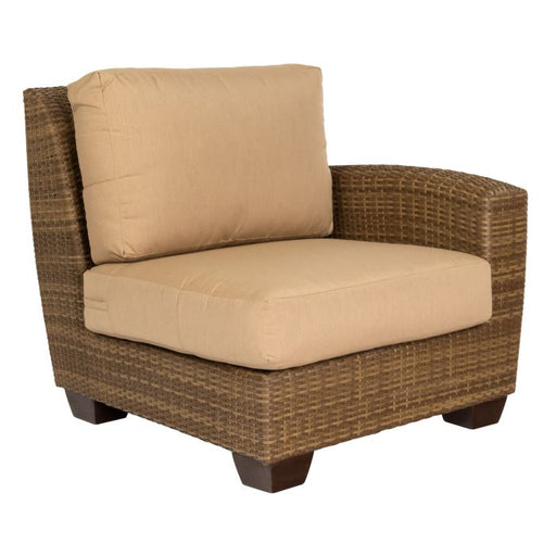 WoodardWoven HDPE Saddleback Left Arm Facing End Unit by Woodard Outdoor Furniture. Height: 32"; Width: 35"; Depth: 38"; Seat Height: 18"; Arm Height: 1";...