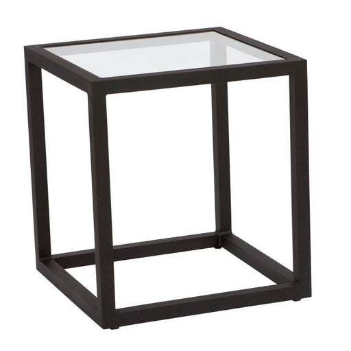 WoodardAluminum Salona End Table with Glass Top by Woodard Outdoor Furniture. Height: 20.5"; Width: 20.3"; Depth: 20.3"; Item Weight: 16.5; Table Base Typ...