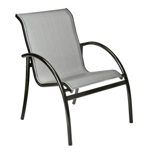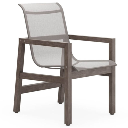 NexTeak Sierra Sling Dining Chair by Woodard Outdoor Furniture. Height: 36.7"; Width: 28.4"; Depth: 22.5"; Seat Height: 18.2"; Arm Height: 25.3"