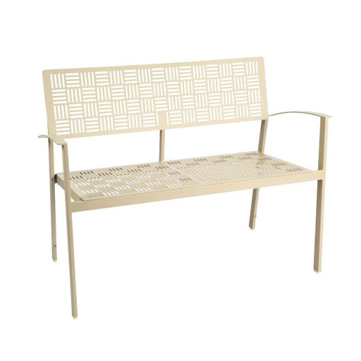 WoodardIron New Century Bench - Stackable by Woodard Outdoor Furniture. Height: 34"; Width: 43.75"; Depth: 23.75"; Seat Height: 17.75"; Arm Height: 26.25"...
