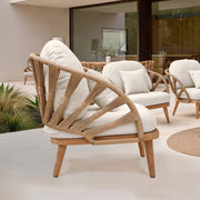 Experience the Krabi Armchair: A Modern Masterpiece of Comfort and Style! A true embodiment of modern elegance and comfort. Crafted with a perfect fusion of premium materials, this armchair is designed to elevate your relaxation to a whole new level. Enhancing the allure of the Krabi Armchair are the sumptuous Sunbrella cushions, elegantly upholstered in the enchanting Canvas 5453 fabric. These cushions not only offer unparalleled comfort but are also known for their fade-resistant and weather-resistant qualities, ensuring they retain their beauty season after season.