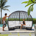 The Nexus Daybed combines comfort, style, and function in one showstopping piece. Its dome-shaped canopy provides shade while plush Sunbrella cushions offer luxurious seating. At the center, a matching woven table with a glass top creates the ideal space for drinks or casual dining. Crafted with a durable aluminum frame and handwoven synthetic fiber. Available in Kubu Mushroom and Black Mushroom finishes.
