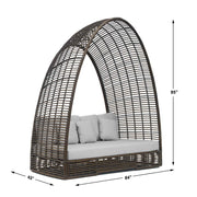 The Ruby Daybed offers a luxurious escape for outdoor lounging, combining contemporary elegance with superior craftsmanship. Its handwoven synthetic fiber frame in a silver walnut finish delivers durability while enhancing outdoor aesthetics. The Sunbrella cushions provide plush comfort and all-weather resistance, making it ideal for poolside retreats, patios, or garden lounging. Its arched canopy design adds a stylish architectural element while providing shade for ultimate relaxation.