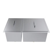 Over/Under 34" x 12" Height Double Basin Sink w/Lids, (2) Sink Drains