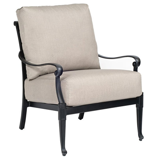 WoodardCast Aluminum Wiltshire Stationary Lounge Chair by Woodard Outdoor Furniture. Height: 35.5"; Width: 28.75"; Depth: 35"; Seat Height: 20"; Arm Heigh...