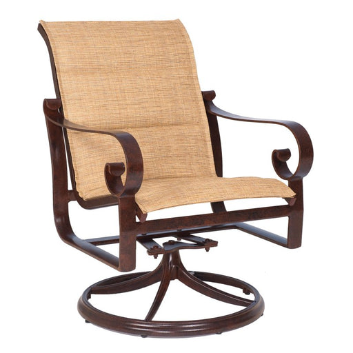 WoodardAluminum Belden Padded Sling High Back Swivel Rocking Dining Armchair by Woodard Outdoor Furniture. Height: 43.1"; Width: 25.25"; Depth: 31.6"; Sea...