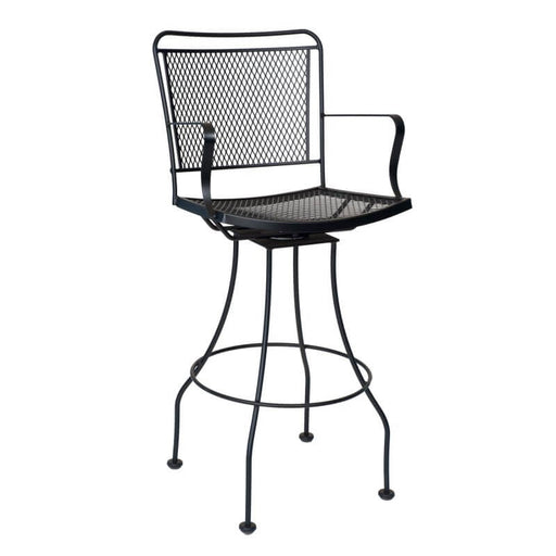 WoodardIron Constantine Swivel Bar Stool by Woodard Outdoor Furniture. Height: 45.75"; Width: 21"; Depth: 22.75"; Seat Height: 30.75"; Arm Height: 38.5"