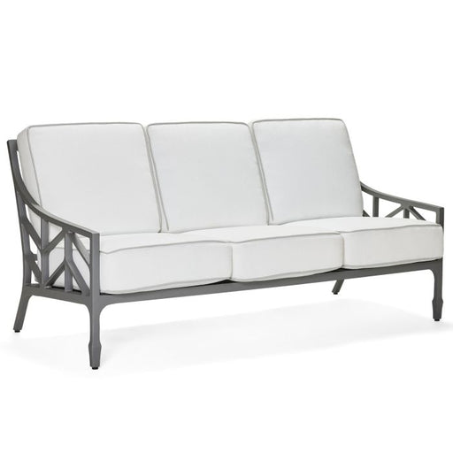 WoodardCast Aluminum Alberti Sofa by Woodard Outdoor Furniture. Height: 34.5"; Width: 73.75"; Depth: 34.25"; Seat Height: 20"; Arm Height: 21.5"