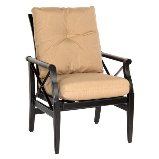 WoodardAluminum Andover Padded Sling High-Back Dining Armchair by Woodard Outdoor Furniture. Height: 42"; Width: 26.5"; Depth: 30.5"; Seat Height: 17.5"; ...