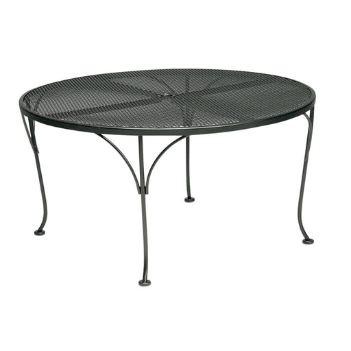 WoodardIron Iron Round Umbrella Coffee Table by Woodard Outdoor Furniture. Height: 21.25"; Width: 41.5"; Depth: 41.5"; Table Base Type: Welded