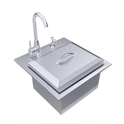 21" Premium Sink with Removable Lid, /Hot/Cold Water Faucet , Soap Dispenser, Sink Grid,Cutting Board & (2) Sink Drains