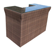 Introducing the Atlantis Bar with Glass - the perfect addition to your outdoor patio for a sleek and modern look while maintaining comfort. The Atlantis Collection offers a unique see-through modular sectional that allows endless possibilities ranging from a sofa, loveseat, armless chair setup to a standard sectional. The Bar features a fully anodized aluminum frame, which is then woven with Rehau Java Brown fiber. The bar has a thin sheet of Plexiglas underneath the woven fiber, making it extremely sturdy for placing drinks and eliminating the need for a glass top. Its unique look and multi-colored textured surface make it one of the most attractive collections for outdoor use. The Atlantis Collection gives you the freedom of designing your own sectional and being the envy of your neighbors.