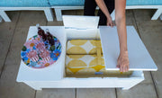 The Mainstay Storage Coffee Table is the perfect combination of chic coffee table and simple storage solution. With both ample storage space and a sturdy surface, its double-duty functionality makes it the perfect centerpiece for your outdoor living space.